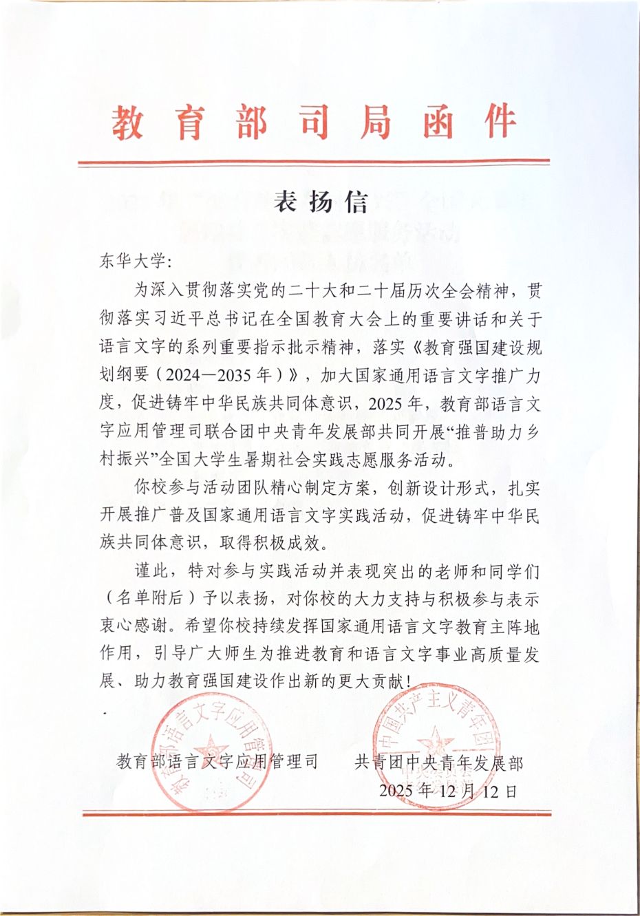 近日,2025年“推普助力乡村振兴”全国大学生暑期社会实践志愿服务活动“优秀团队”名单正式揭晓!成人无码-av影片-欧美性爱 “语润边疆·沪疆共育”实践团从全国2000支团队中脱颖而出,荣获全国“优秀团队”,获得教育部语言文字应用管理司与共青团中央青年发展部通报联合表扬。